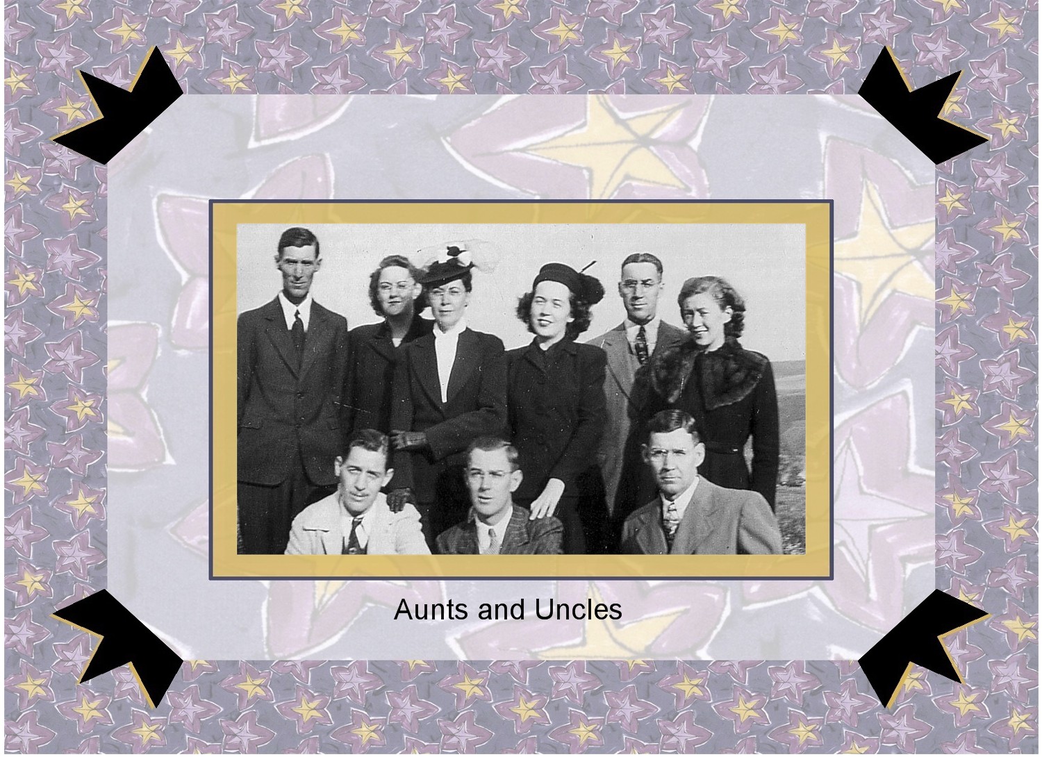 In the back row is Edward John,(my father) Mary Agnes, Sybil Etta, Sarah Alma, Charles Fletcher, and Margaret Helen. In the front row is Laurence Harold, John Francis, and Eugene Robert. This picture was taken in 1946. |
